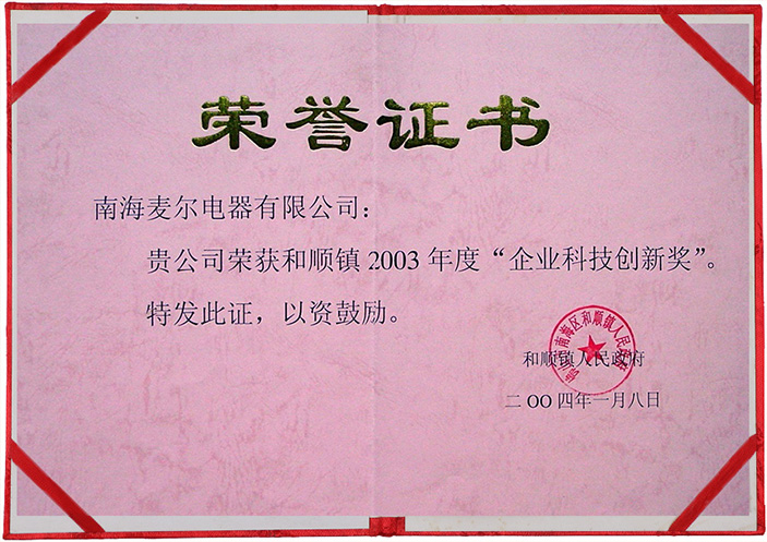 企業(yè)科技創(chuàng)新獎(jiǎng)2004